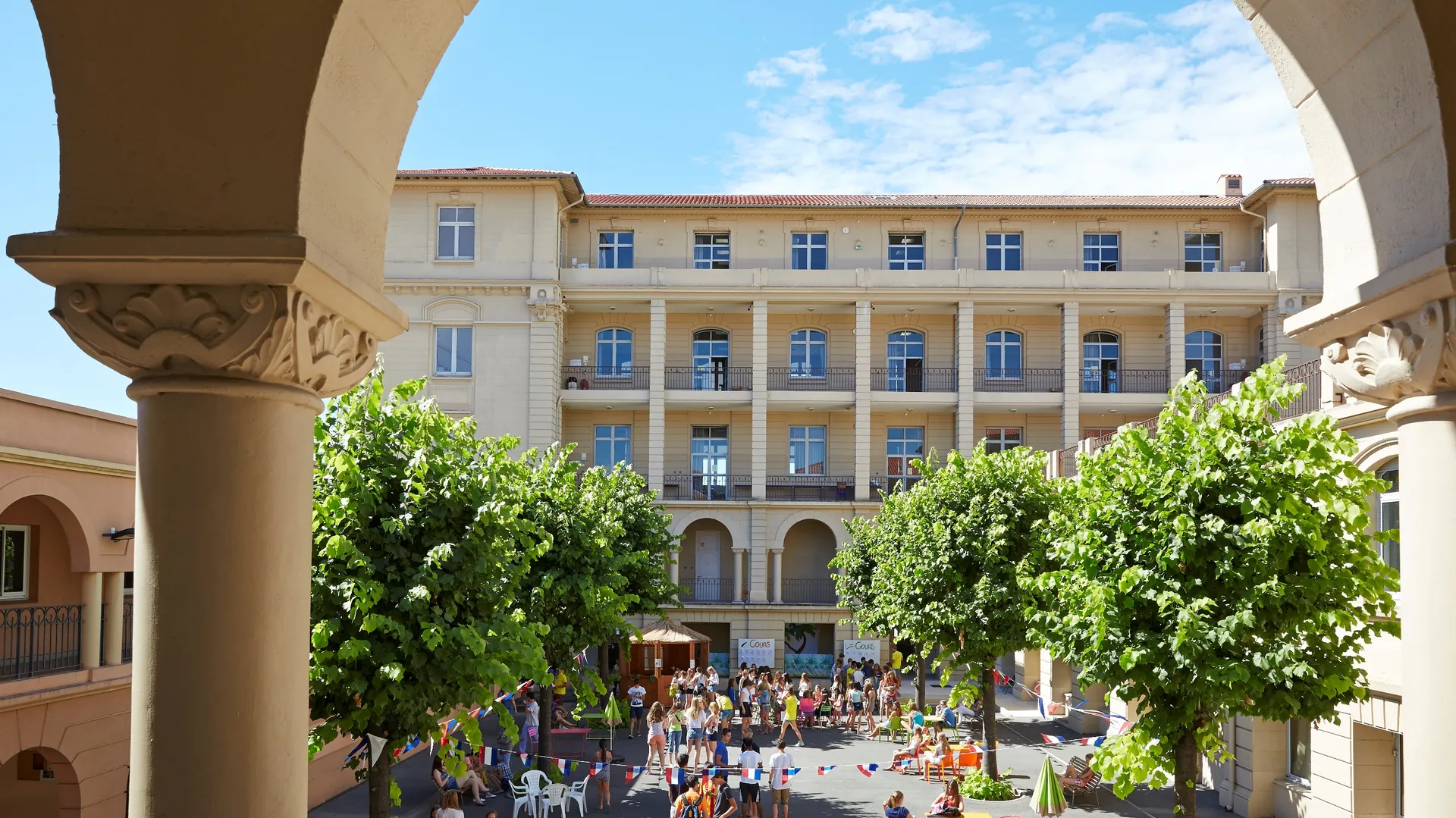 rezydencja, 2-osobowy, pełne wyżywienie */?/Kampus zajmuje 7,5 akrów przestrzeni, w samym centrum Cannes. Obejmuje: sale lekcyjne, zakwaterowanie, basen, restaurację i boiska sportowe. Podczas obozu studenci zakwaterowani są w naszej rezydencji, usytuowanej w historycznym budynku, znajdującej się niecałe 2 kilometry od Croisette i plaż. Jednocześnie mieści do 120 studentów. Pokoje są 2-osobowe, z łazienką dzieloną (1 łazienka na dwa pokoje). Zapewniamy pościel (bez ręczników) i sprzątanie (lekkie codziennie i dokładne w weekend). Posiłki w formie bufetu serwowane są w restauracji na kampusie (w trakcie weekendów – pikniki poza kampusem). Na terenie rezydencji zapewnione Wi-Fi i możliwość prania.